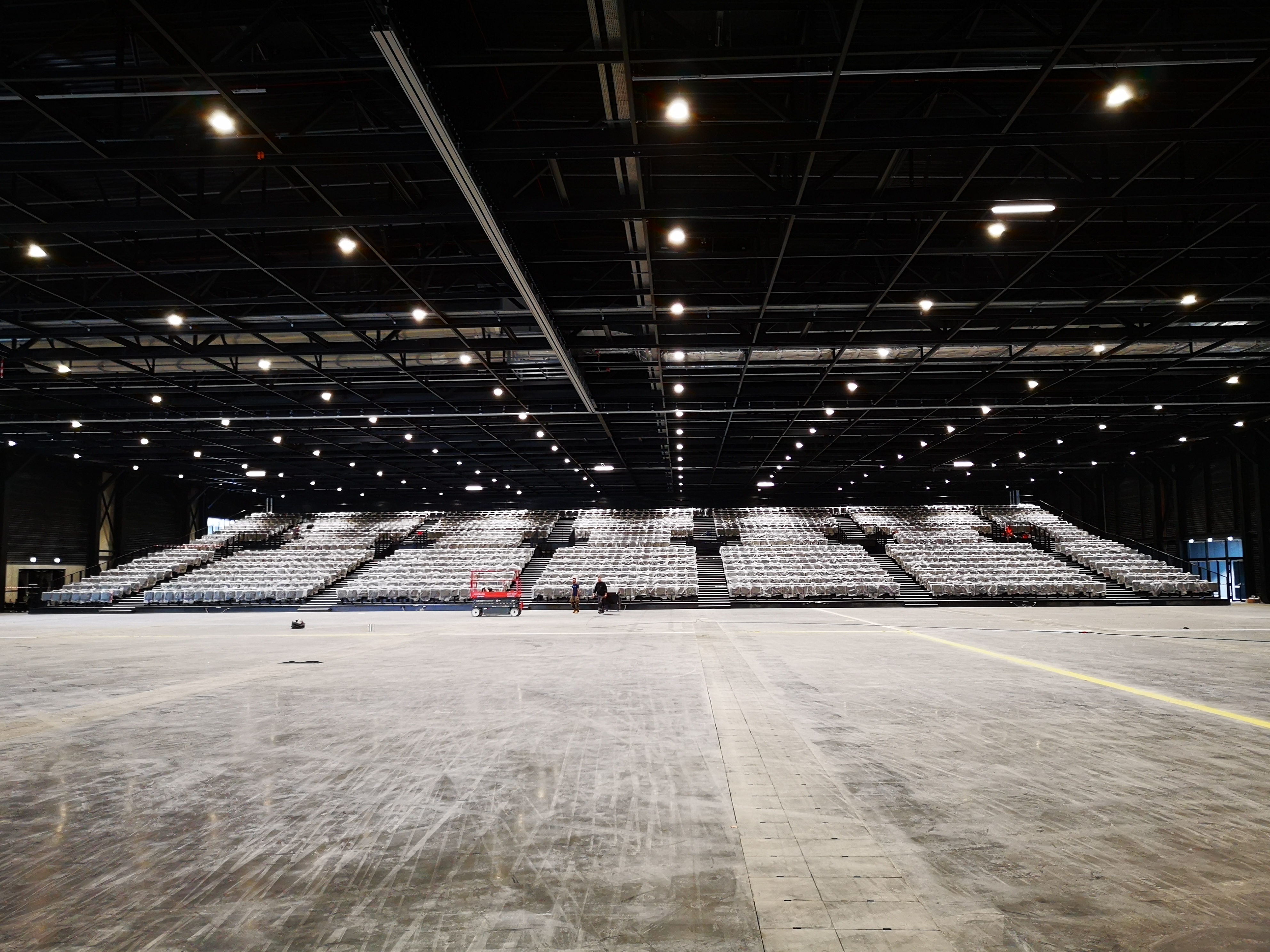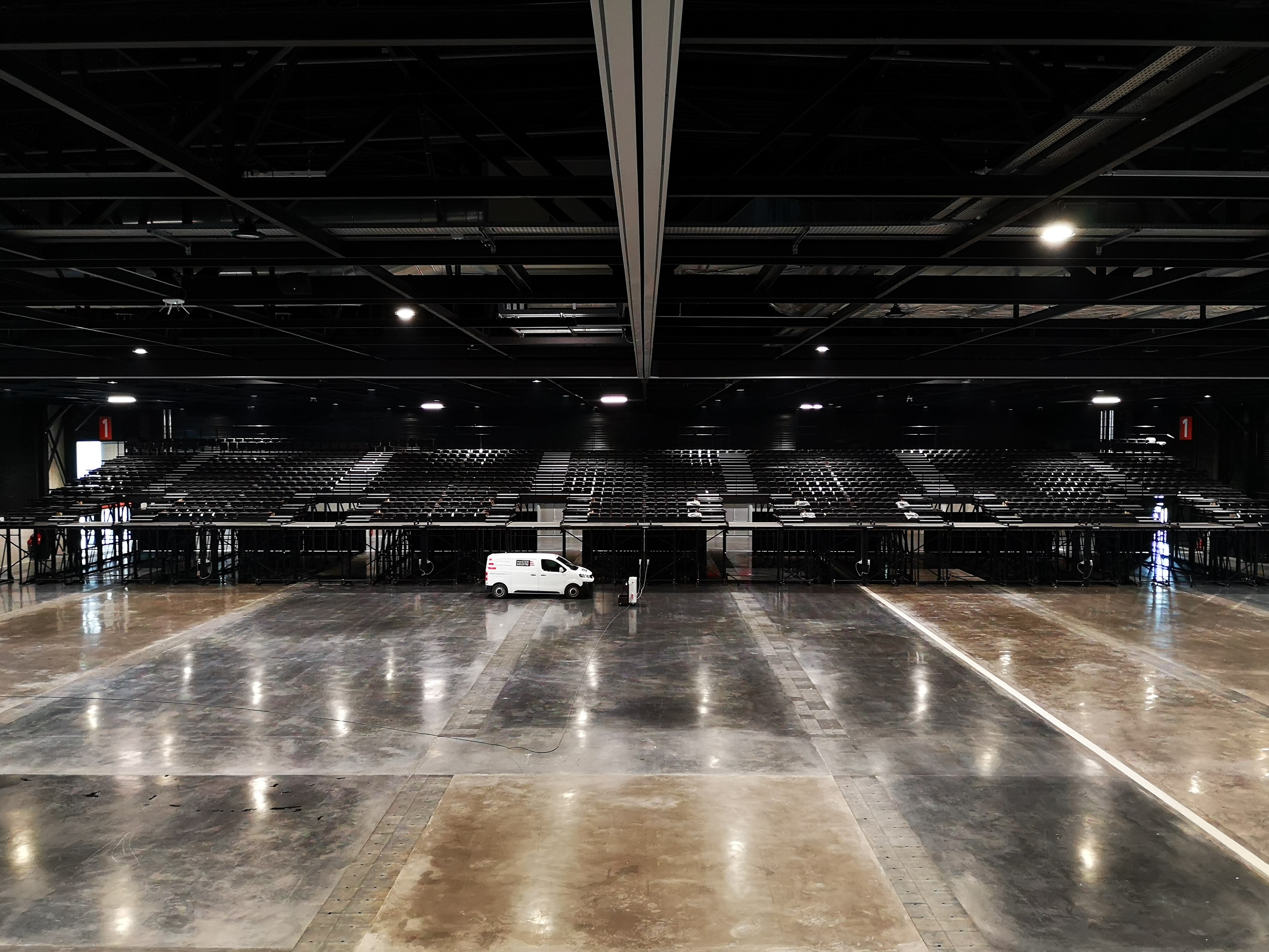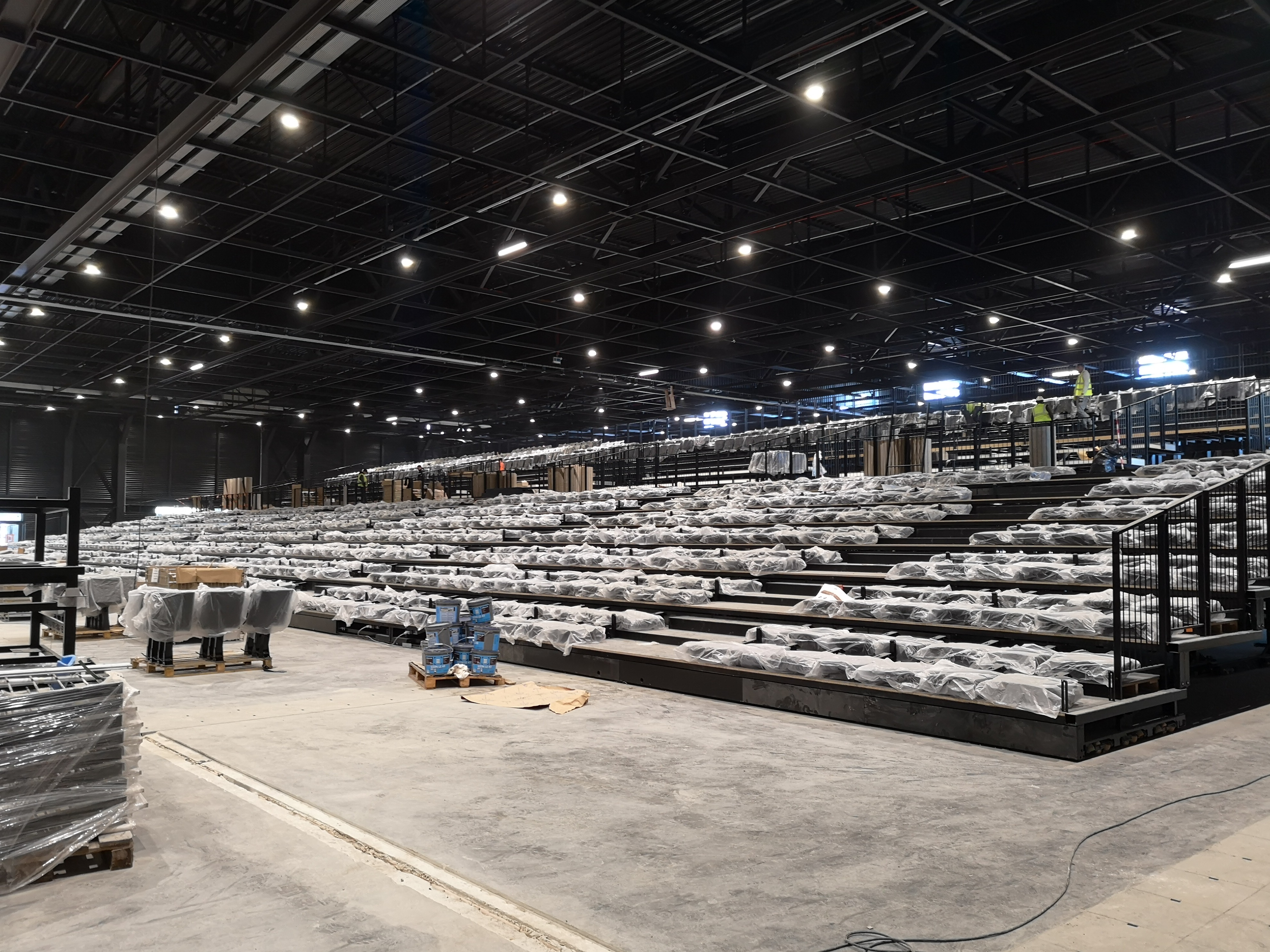 Master Industrie designed, built and installed a huge telescopic stand with 30 rows of MASTER One+ seats.