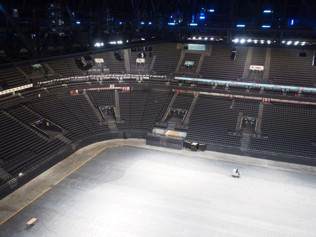 Master Industrie was asked to provide modular, telescopic stands to enhance the flexibility of the seating. The stands are in the lower part of the arena and seat 4200 spectators. They had to be specially designed and custom built to meet the unusual U shaped layout, with trapezoidal corner platforms. The seats themselves had to be bought in from BlueCube Seating to meet the specific dimensions specified by the architect.